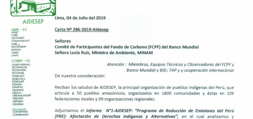 AIDESEP presenta informe técnico sobre el Programa de Reducción de Emisiones del Perú (ERP-PD) FCPF: Afectación de derechos indígenas y Alternativas